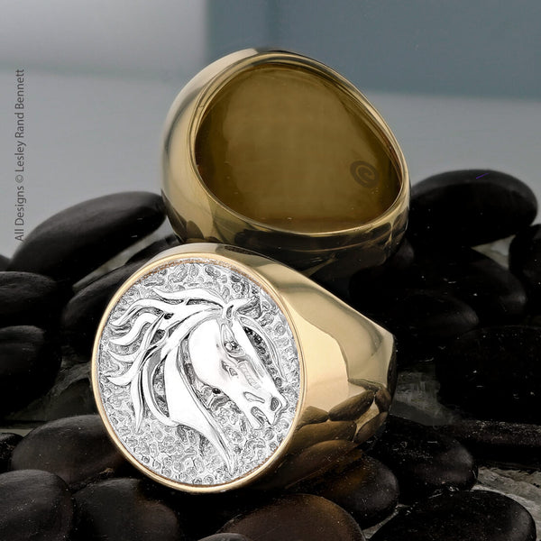 Unique horse head rings, horse necklaces and pendants in many breeds, beautiful horses adorn 14k and 18k bracelets, and horse earrings in many breeds and disciplines to show your equestrian style and make an elegant statement. By Lesley Rand Bennett who's equestrian jewelry is known around the globe. Because we LOVE horses at Bennett Fine Jewelry.