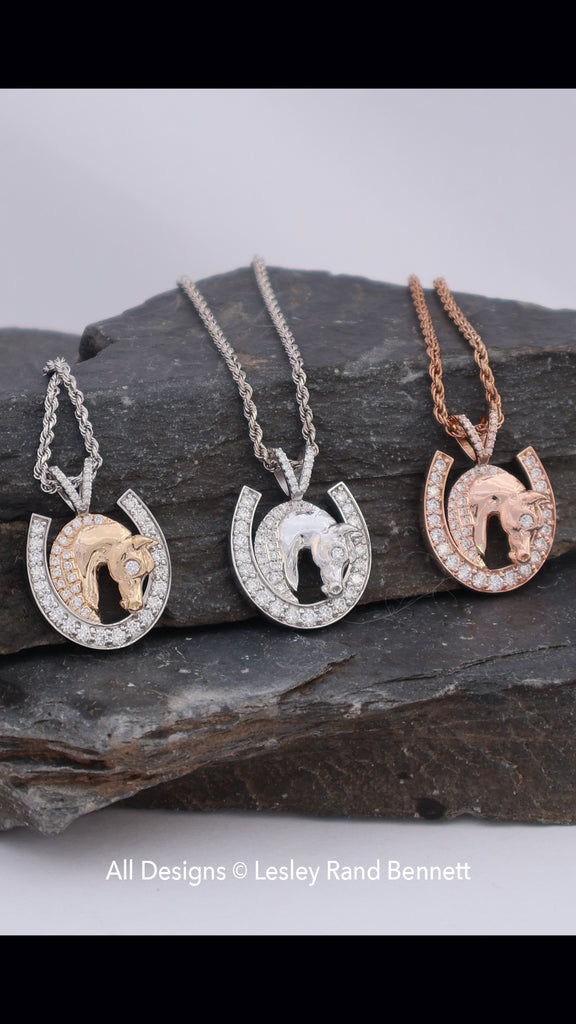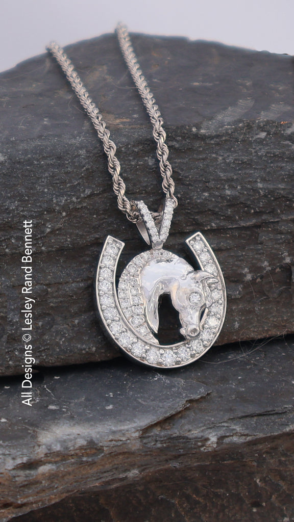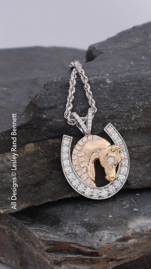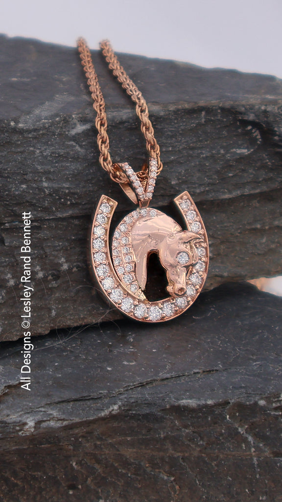 / 14k Diamond Horseshoe with Arabian Horse Head Pendant